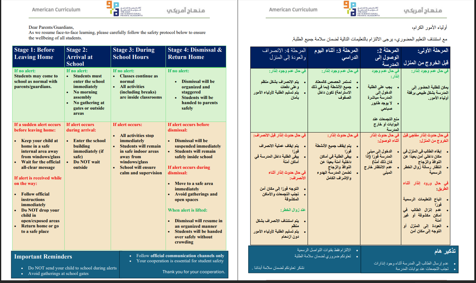 ولياء الأمور الكرام، استنادًا إلى التعليمات الصادرة عن دائرة التعليم والمعرفة (ADEK)، يرجى العلم بأن الدراسة ستكون عن بُعد خلال الفترة من الاثنين 2 مارس إلى الأربعاء 4 مارس 2026. ...